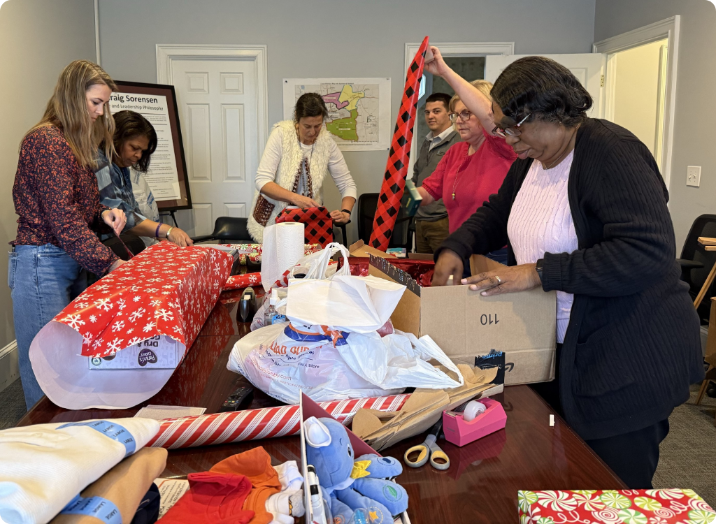 The Midlands corporate and customer service offices helped a local family through Families Helping Families with their Christmas needs. The family was “adopted” by South Carolina Water Utilities and the requested gifts were purchased, along with Walmart gift cards. Pictured are employees wrapping the gifts prior to delivery.