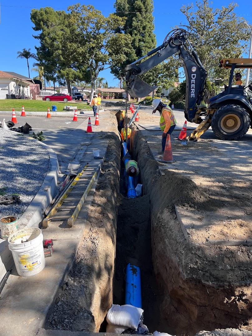 Suburban Water Systems’ (Suburban) distribution waterlines provide customers with drinking, domestic, irrigation, and fire protection water. The La Pluma & Pastrana Pipeline Project in the City of La Mirada will replace 3.5 miles of aging water lines that are in poor condition and are experiencing leaks. The project area is the neighborhood west of Santa Gertrudes Ave. between Rosecrans Ave. Alicante Rd. Construction began in January 2023 and will be completed by December 2023.