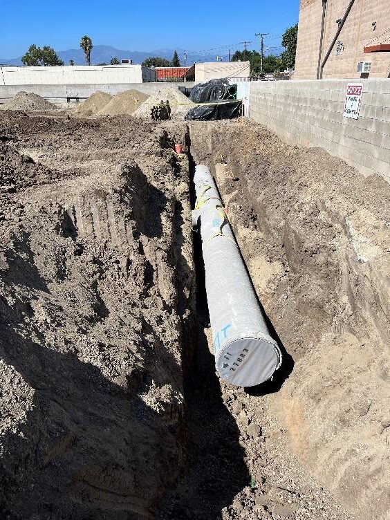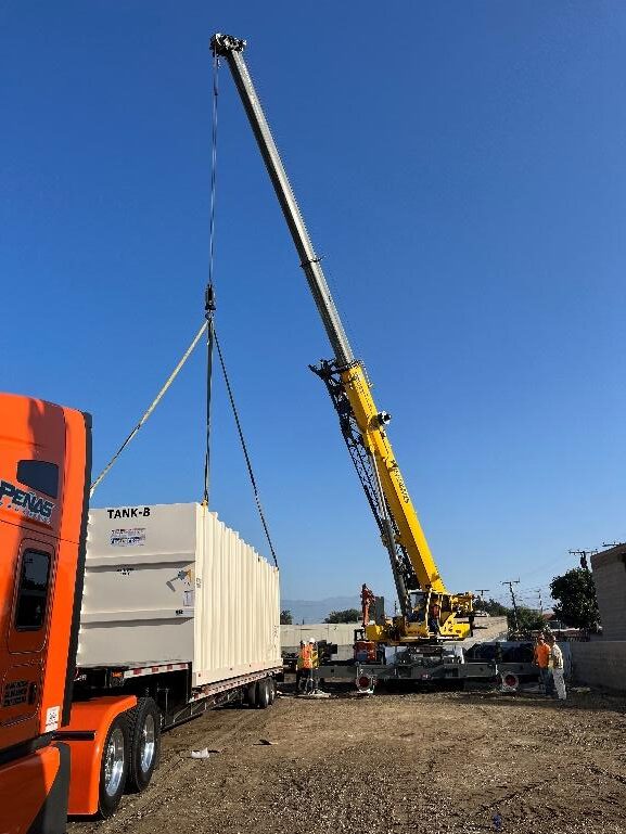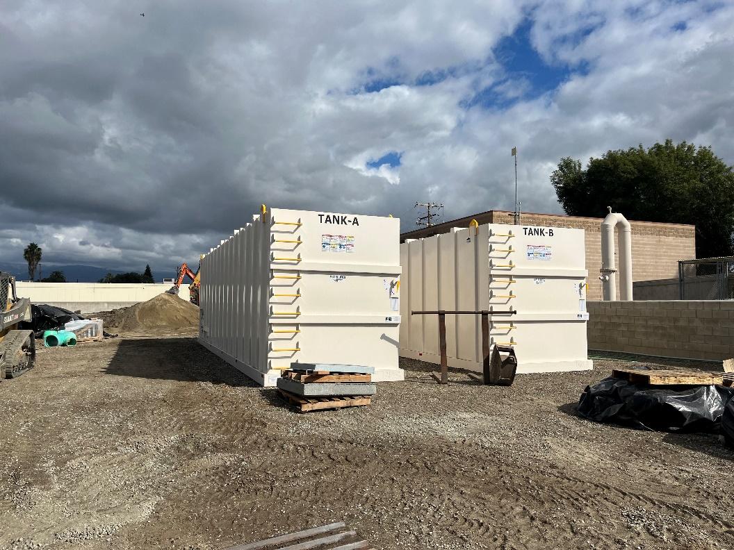 A lot has happened since our introductory article about Suburban Water Systems’ Plant 128 project last April 2023. Suburban’s Construction Management and Engineering team kicked off construction with the pre-construction meeting in July 2023. The contractor started by installing new onsite piping that will allow water from multiple sources to fill the reservoir and storm drain piping to drain water from the site. The contractor has also received and begun the installation of temporary tanks required to store water and keep the facility in operation while the 100-year-old reservoir is demolished and replaced with a new half-million-gallon welded steel tank.