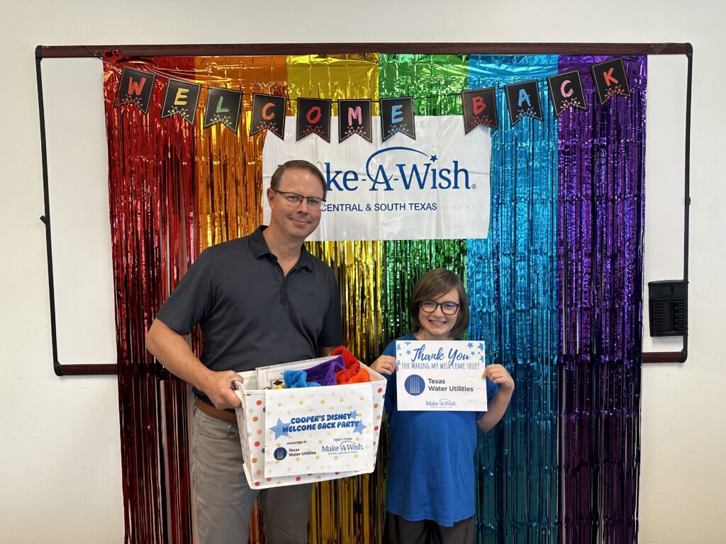 On April 25, 2024, Texas Water Utilities and Make-A-Wish Central & South Texas celebrated ten-year-old Cooper with a Disney-themed welcome back party.